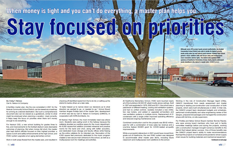 Carl A. Nelson & Company delivered a successful master plan to the Keokuk School District, and it kept the district focused on priorties when a portion of its project funding fell through. Read about how the plan helped the district achieve success with what it could afford in our wibi newsletter.